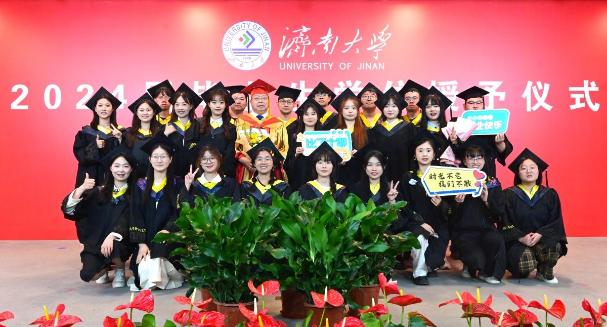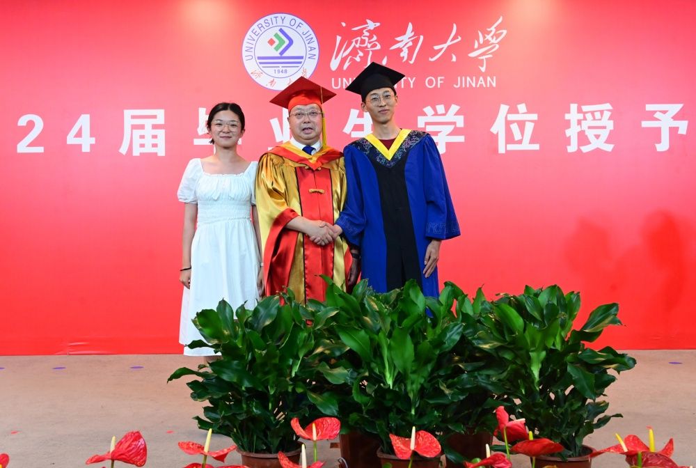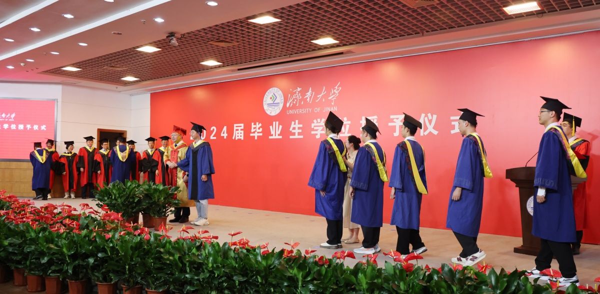 学位授予仪式上,各学院院长发表了深情的寄语。曾经,同学们怀揣梦想负笈济大,开启人生新的篇章;如今,他们书写了奋斗有我的青春诗行,德智体美劳全面发展的他们,在点滴之间践行着“弘毅、博学、求真、至善”的校训,历经成长与蜕变,锻造了自信和坚强,铸就了品德和修为。昔日同学们在教室里的书声琅琅,操场上的拼搏呐喊,图书馆的静谧自习,甲子湖畔的岁月畅想,这些都汇聚成了大家回望岁月的专属记忆。山高水长、相逢有幸。愿同学们满载着母校的期待与祝福,以青春之我赴时代之约,坚定理想信念,厚植家国情怀,涵养进取品格,一路繁花,且行且歌,熠熠生辉。