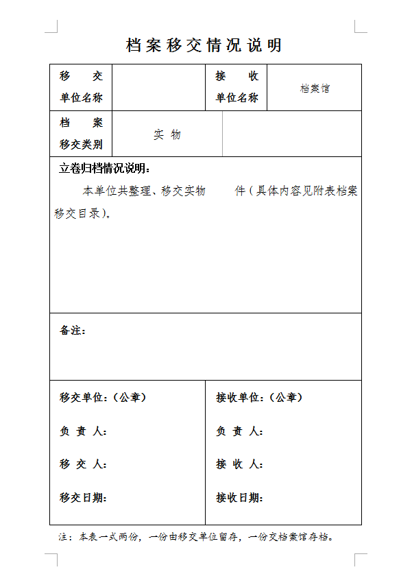 档案移交情况说明(实物)